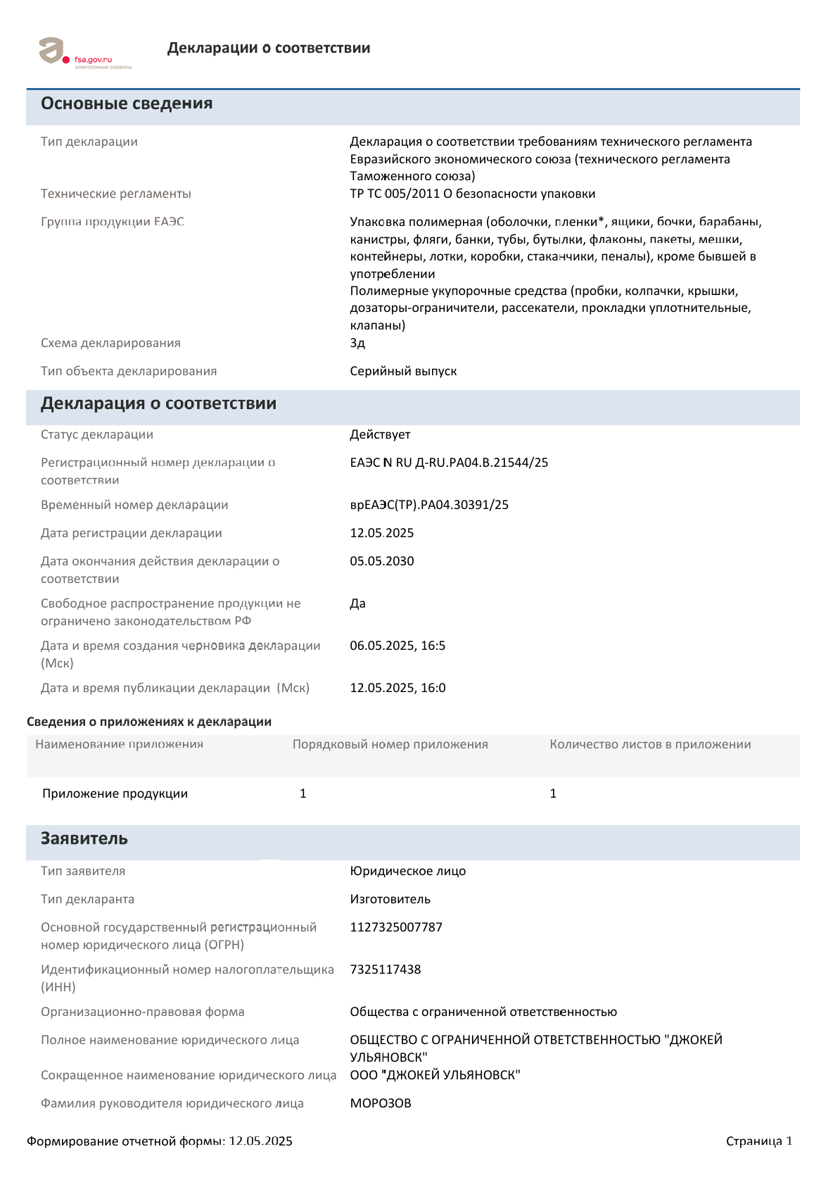 Декларация о соответствии 2025