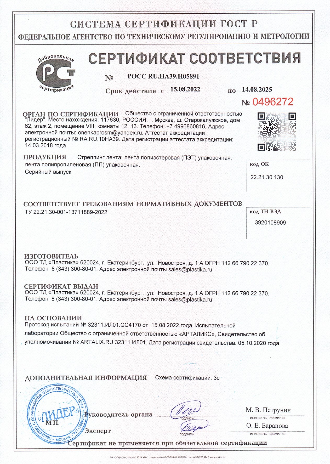 Сертификат соответствия на ленты ПЭТ и ПП 2025