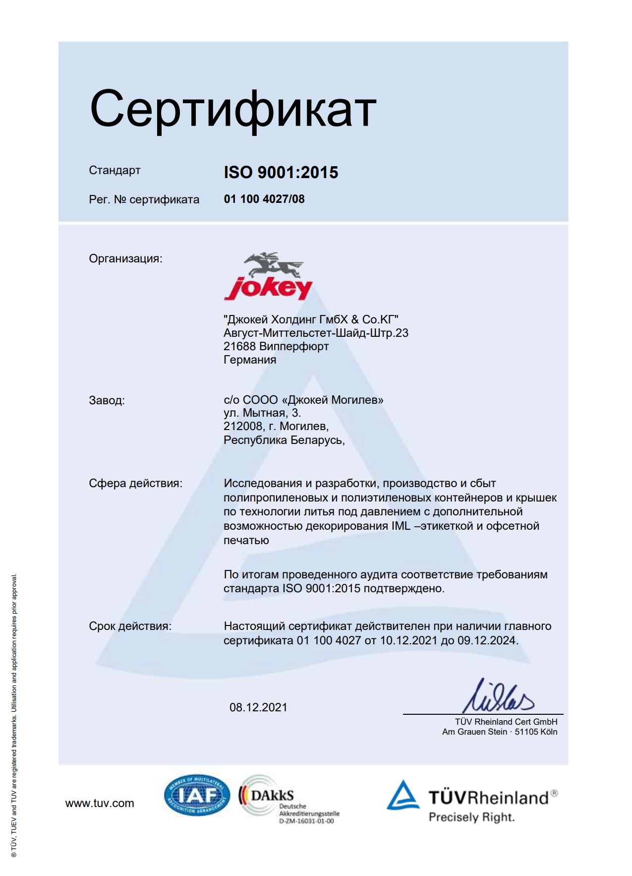 Сертификат соответствия ISO 2021